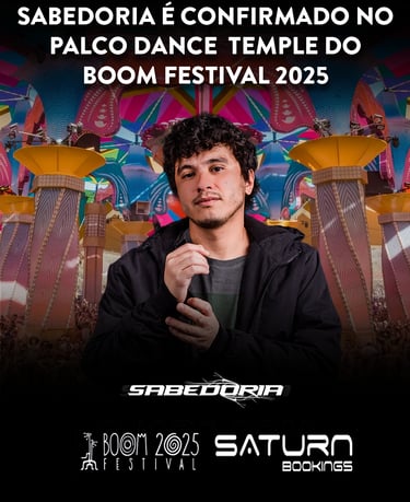 É com enorme alegria e orgulho que anunciamos uma conquista histórica para a Saturn Bookings e para a cena psytrance brasileira: Sabedoria está confirmado no line-up do palco principal do Boom Festival 2025! 🌍✨
